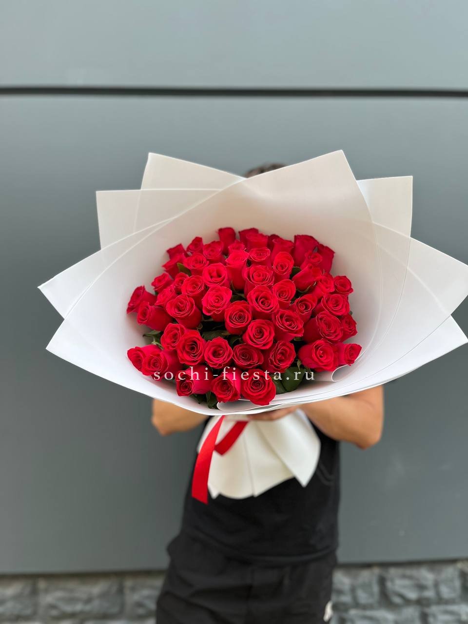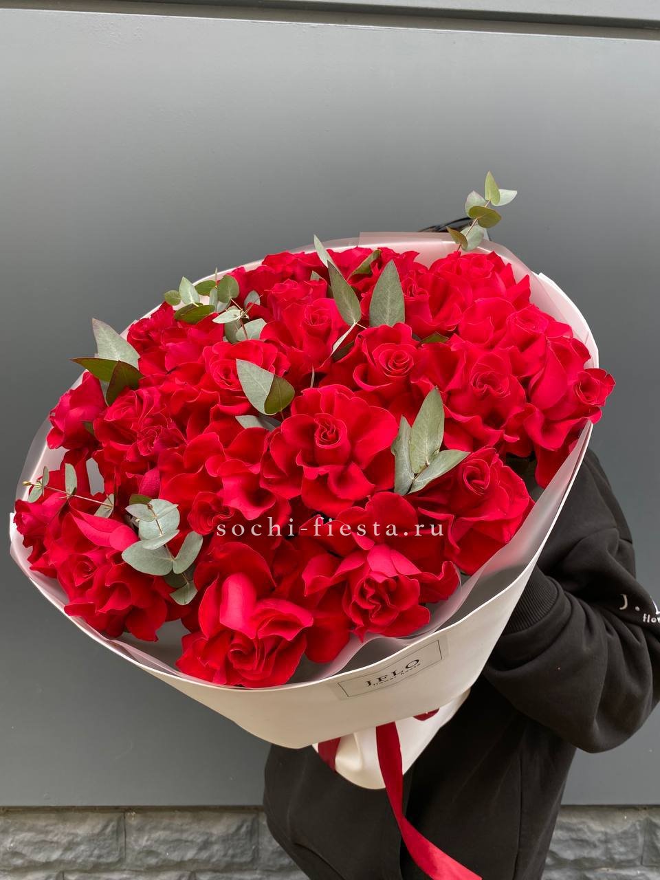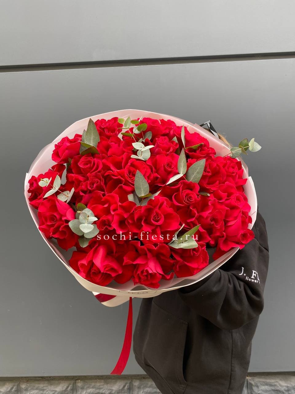 Сто одна голландская роза в букете — это история о масштабе и впечатлении. Объем композиции наполняет комнату и мгновенно притягивает внимание своим присутствием.