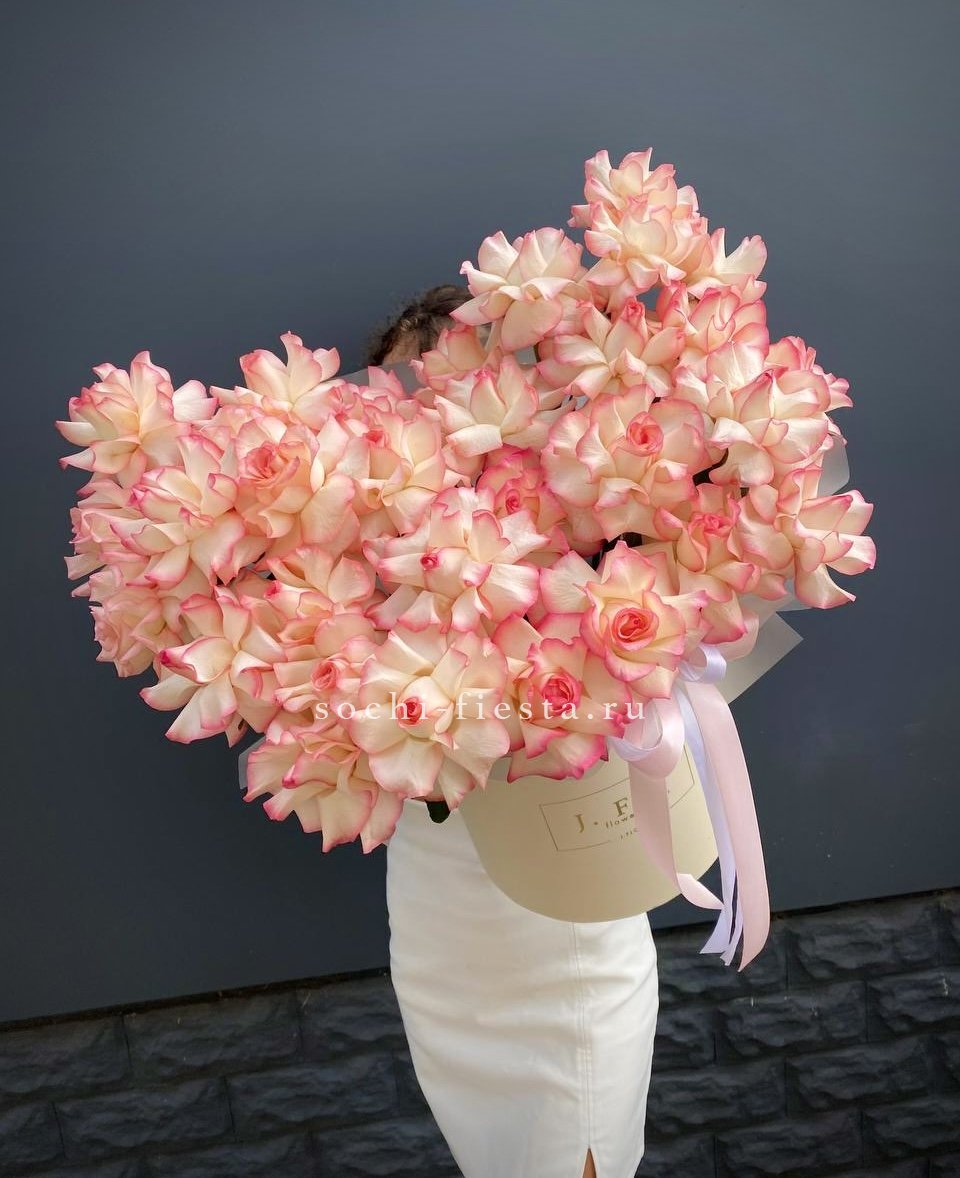 Для заказа товара "31 французская роза Джумилия в боксе" с доставкой в Ханты-Мансийске нажмите