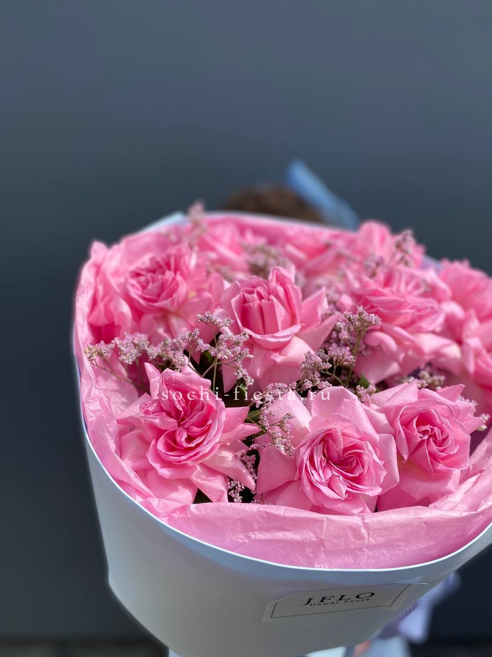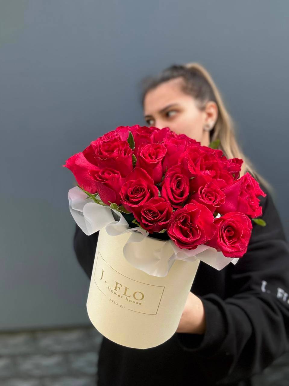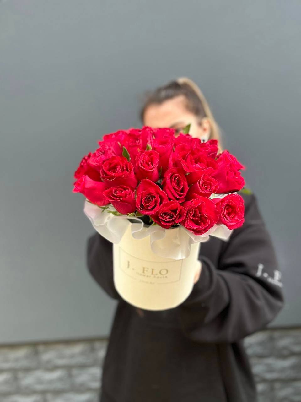 Тридцать один бутон насыщенного красного оттенка собраны в плотную композицию. Упаковка мягко обрамляет цветы, сохраняя естественную форму и позволяя каждому бутону раскрыться в своем ритме.