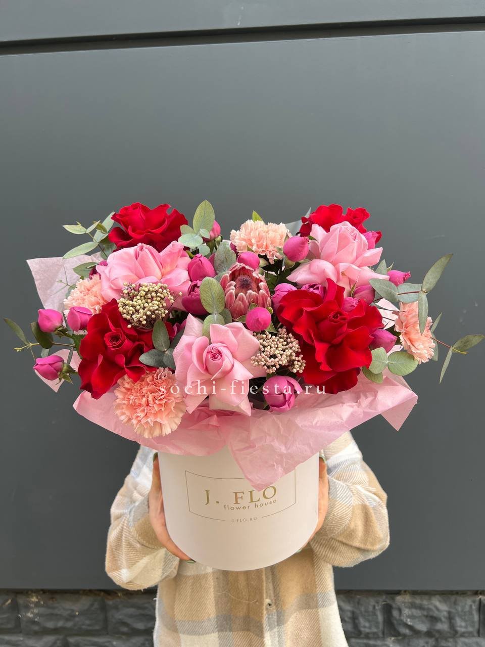 Тридцать семь роз раскрываются пышной шапкой глубокого красного оттенка. Бутоны плотно прилегают друг к другу, создавая объемную текстуру. Композиция звучит насыщенно и уверенно.