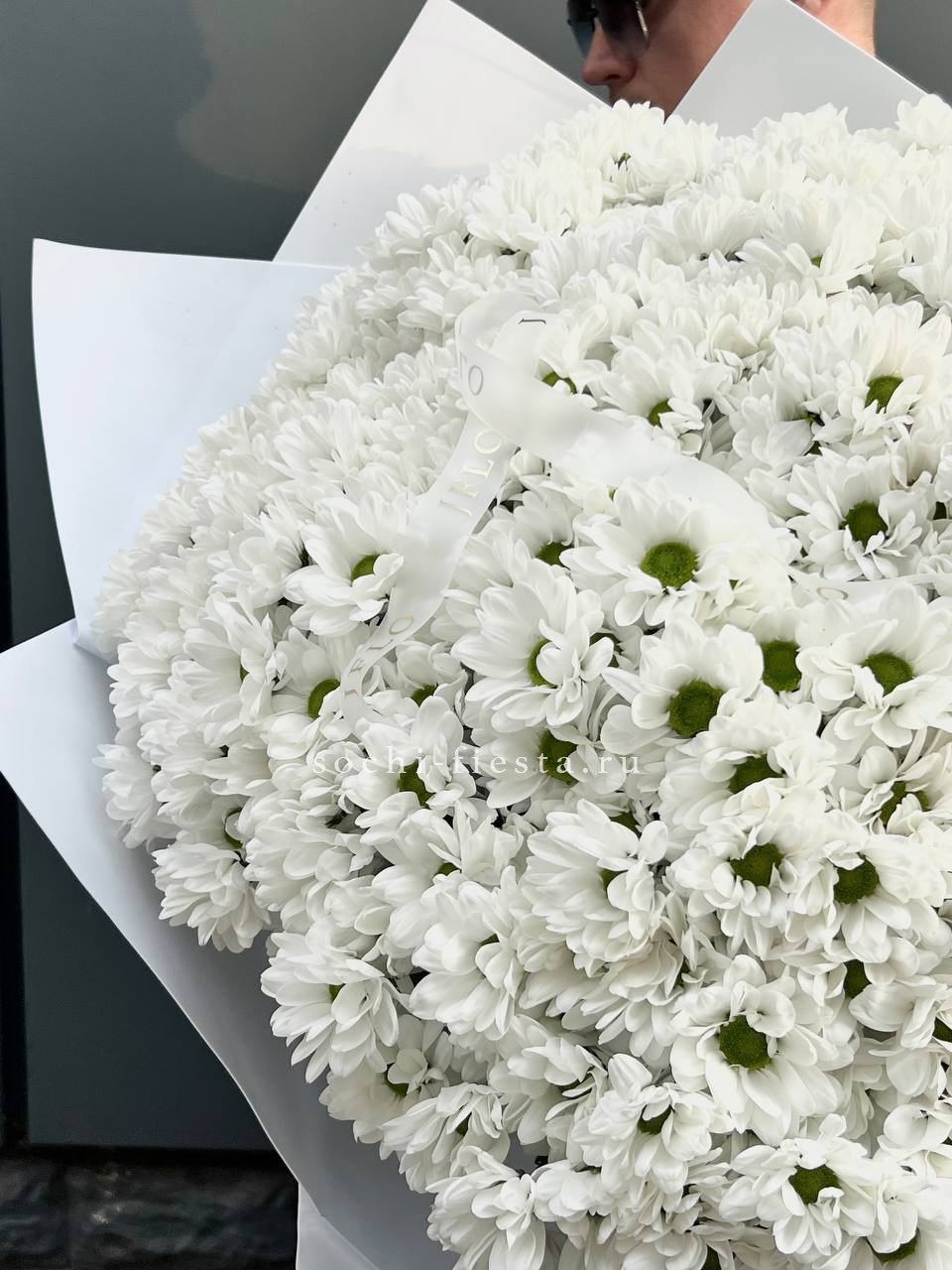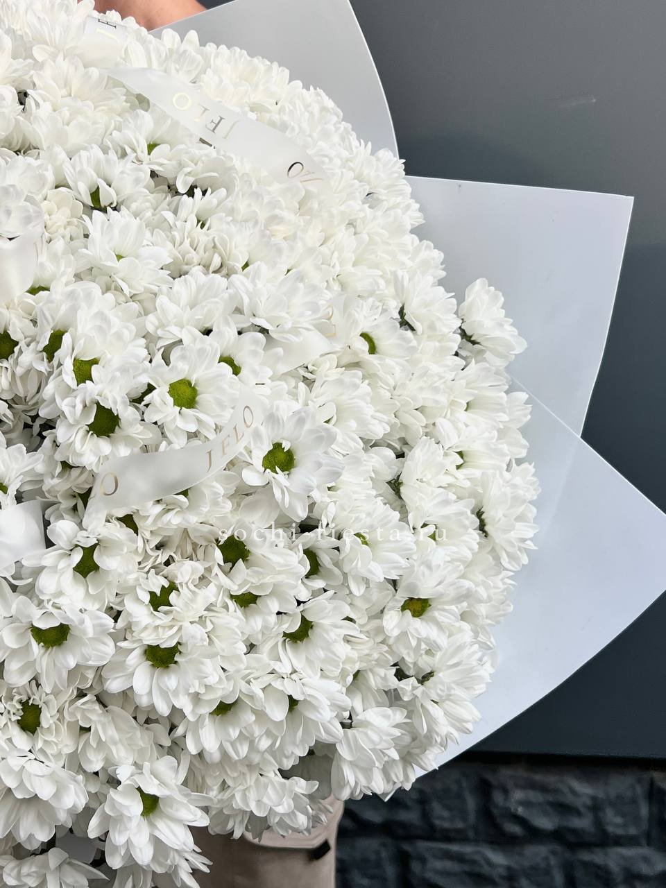 Сто одна хризантема выстраивается в масштабную композицию с впечатляющим присутствием. Плотная структура и высота создают эффект цветочной инсталляции в пространстве.
