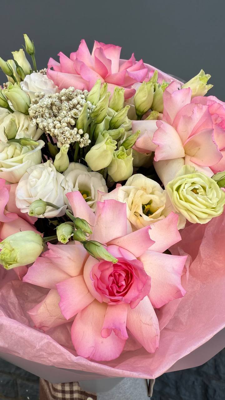 Наши флористы использовали технику выворачивания роз, чтобы создать этот невероятный объем и фактуру. Сочетание нежной эустомы и озотамнуса превращает букет в настоящий арт-объект. Идеальный выбор для тех, кто любит удивлять и ценит нестандартную красоту.
