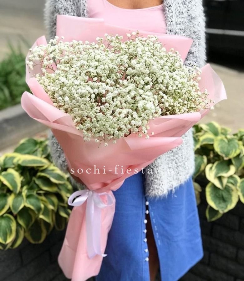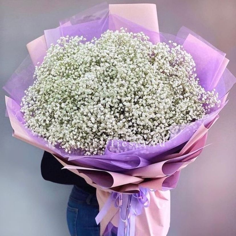 Двадцать пять веточек гипсофилы образуют пышное воздушное соцветие с мягким силуэтом. Белый цвет создает ощущение легкости и свежести в любом интерьере.