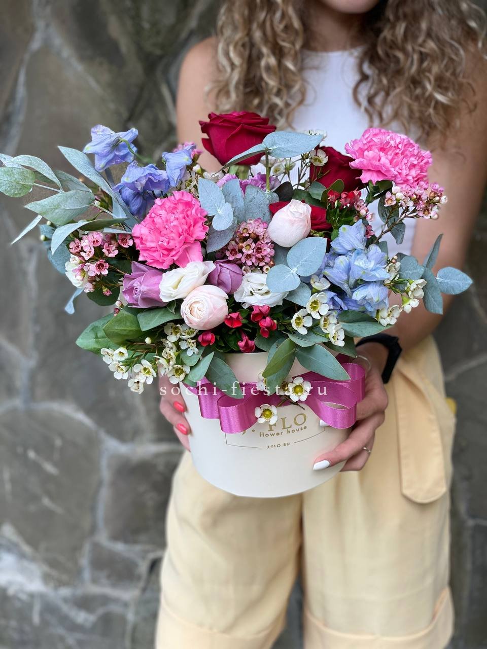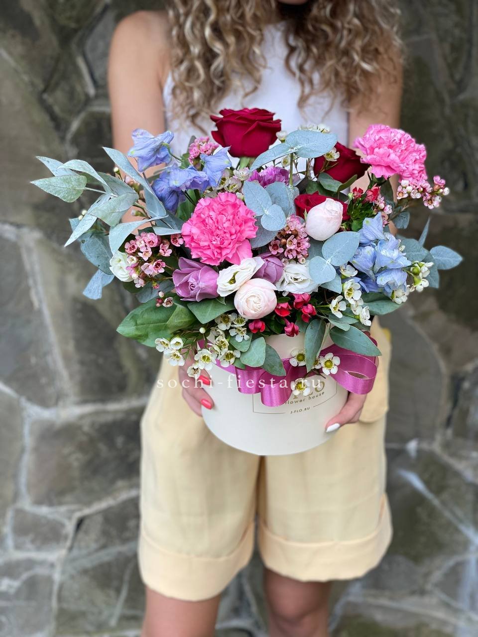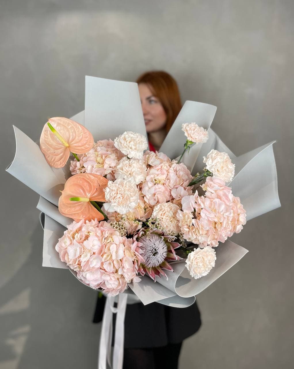Карточка с комплиментом и возможностью добавить собственное послание. Тёплые слова на плотной бумаге усиливают впечатление от букета и остаются на память. Текст до семи предложений.