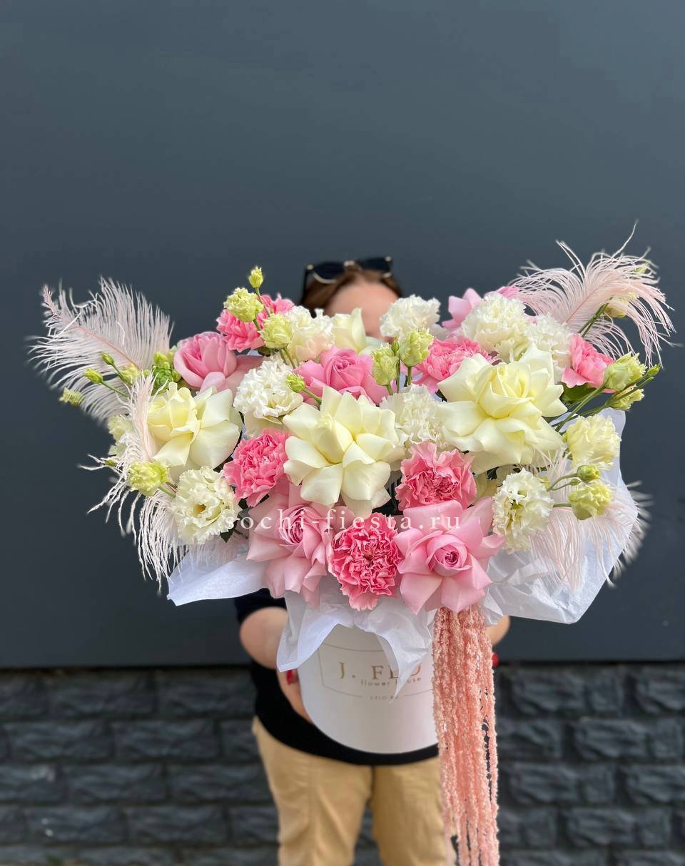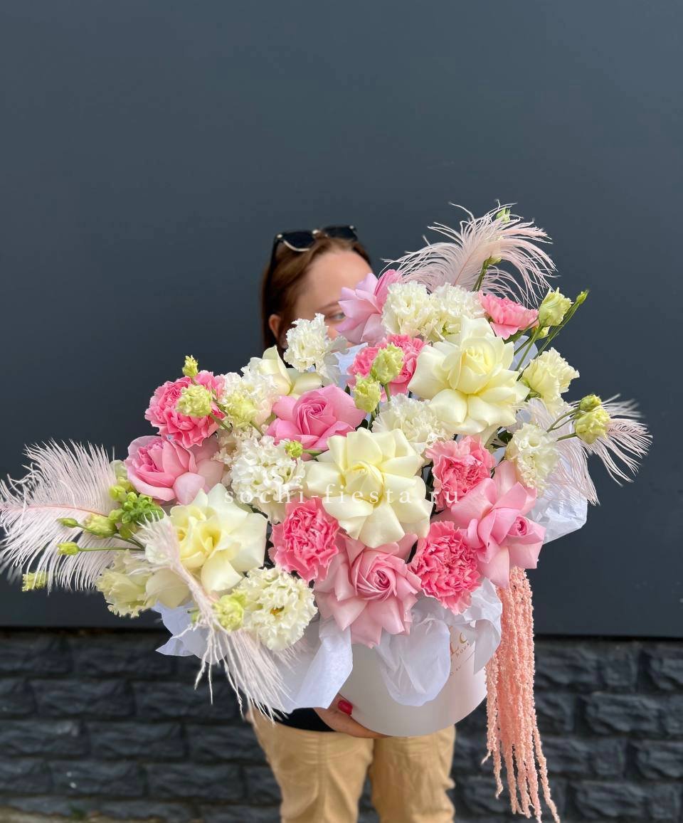 Этот авторский микс из пудровой гортензии и кружевных диантусов — идеальный подарок для тех, кто вдохновляет. Сочетание фактур и оттенков розового создает ощущение легкости и весеннего тепла. Букет, который невозможно выпустить из рук.