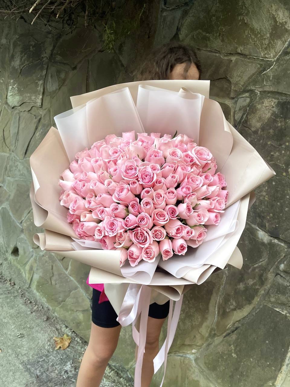 цветочная композиция в бело-розовых тонах в нежном розовом цилиндре D25.
