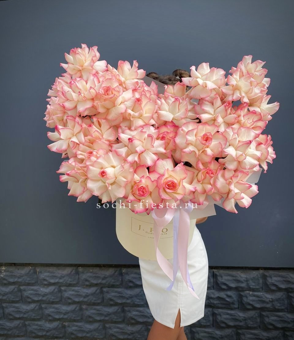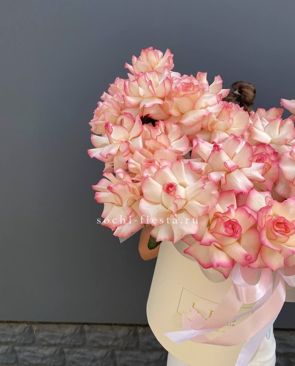 Композиция в светлом цилиндре выдержана в единой нежно-розовой палитре. Оттенки перетекают один в другой, создавая спокойное и цельное визуальное впечатление.