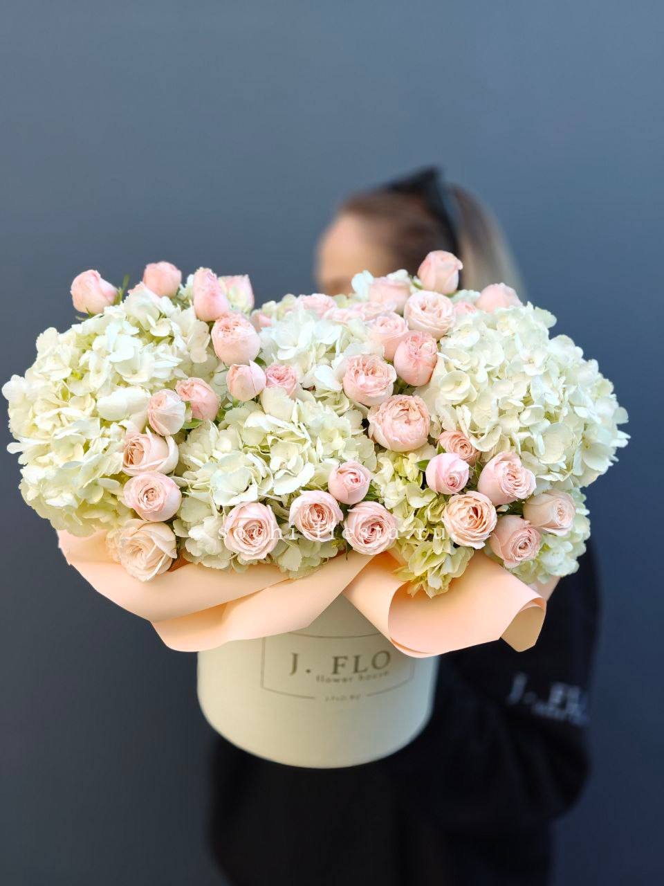 Многослойные бутоны эустомы собраны в розовом цилиндре с заботой о каждом лепестке. Пастельные переходы создают мягкую глубину, а форма остается безупречной.