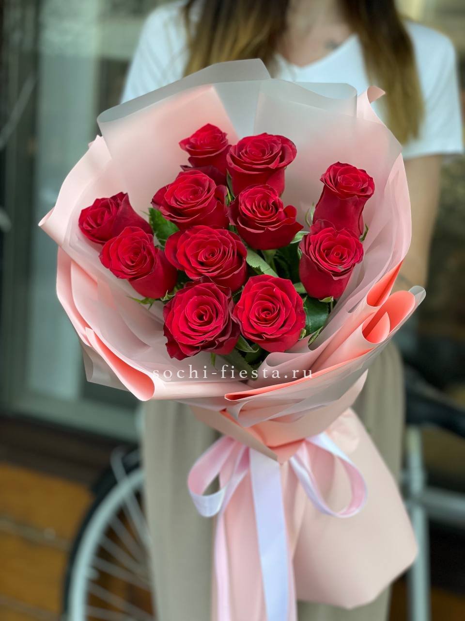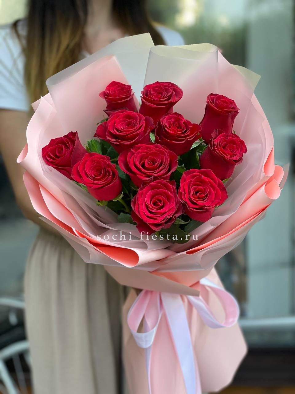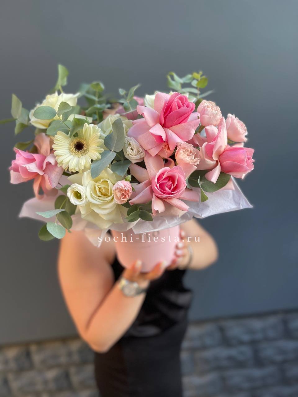 гортензия, альстромерия, кустовая роза, декоративная зелень.