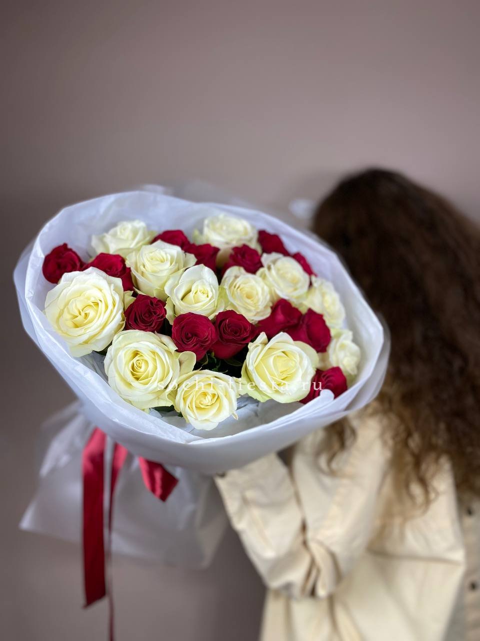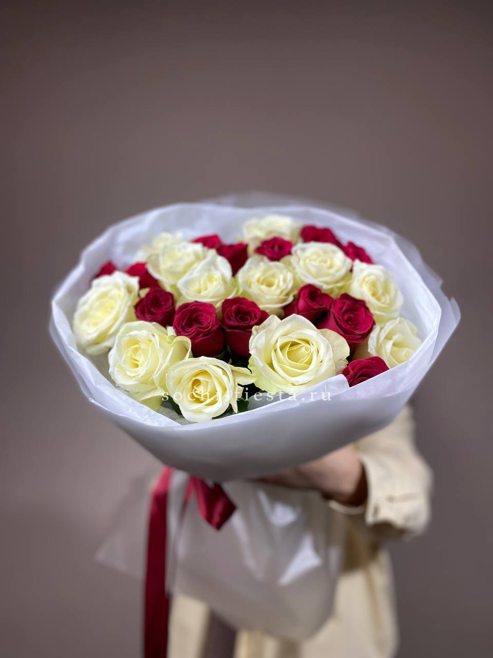 Круглая коробка с цветочной композицией в кремовых и пудровых тонах создаёт мягкое визуальное впечатление. Шесть макаронс дополняют нежную палитру светлого оформления.