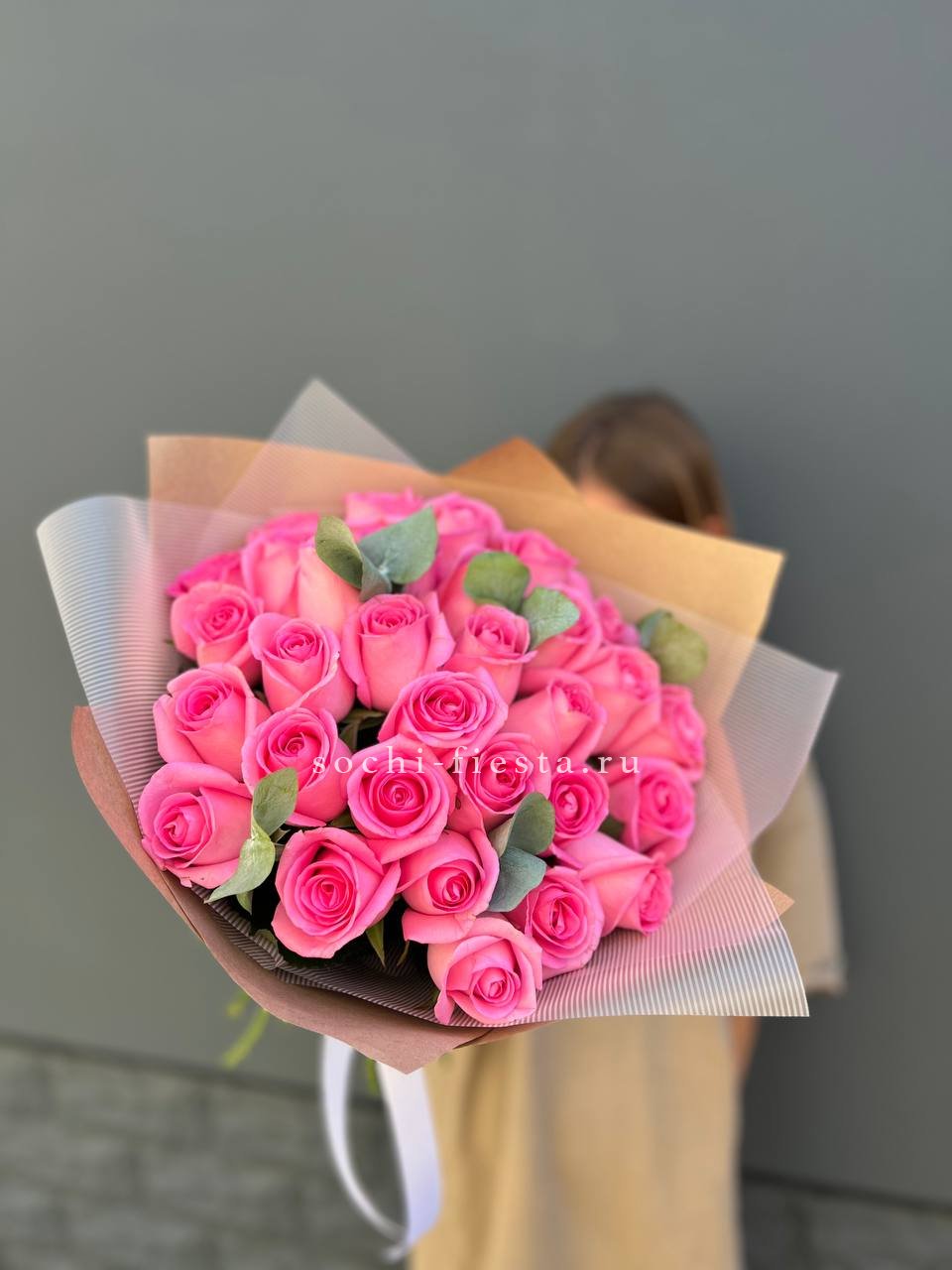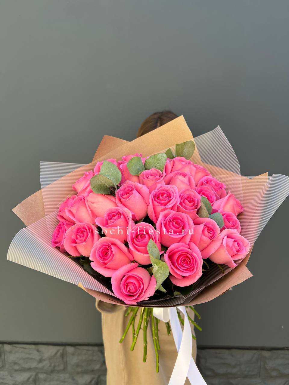Белоснежные хризантемы и эустома создают светлое облако, которое разбавляют акценты гербер и душистой маттиолы. Композиция в сумочке готова к вручению сразу после получения.