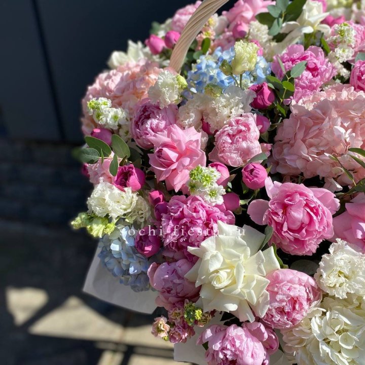 Каждый сезон приносит в Ханты-Мансийске свой ассортимент корзин. Весной флорист создаёт корзины с тюльпанами и нарциссами — лёгкие, нежные, полные ощущения обновления. В мае-июне приходят пионы — Sarah Bernhardt, Bowl of Cream, Red Charm — главный флористический праздник. Осенью — хризантема в тёплых гаммах с декоративными ягодами и ветвями. Зимой — хвойные аранжировки с амариллисом для праздничной атмосферы.