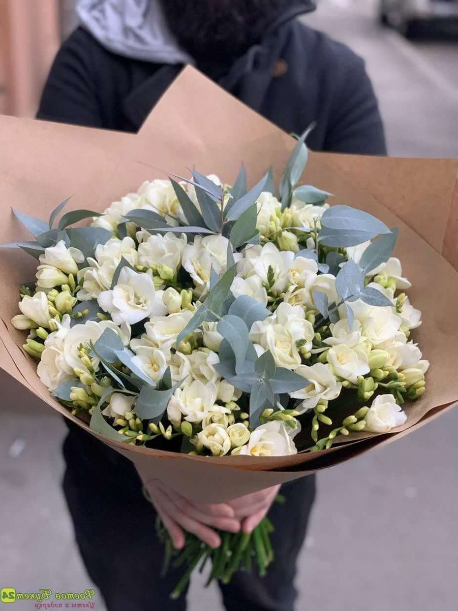 Корзина вмещает двести один бутон, образующих пышное цветочное полотно. Классическая форма подачи позволяет разместить композицию в любом пространстве без необходимости искать вазу. Впечатляющий объем для важных событий.