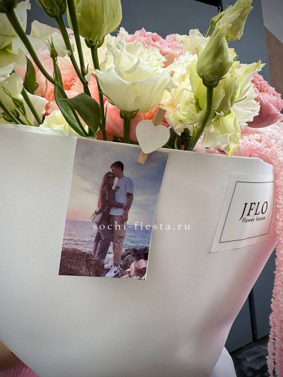 Персональная фотокарточка превращает букет в память о конкретном дне. Ваш снимок напечатают и закрепят так, чтобы история осталась рядом с цветами.
