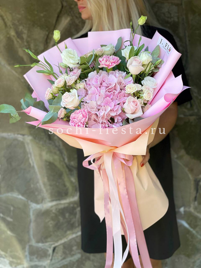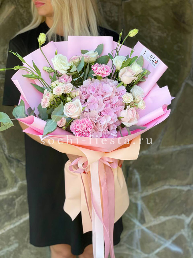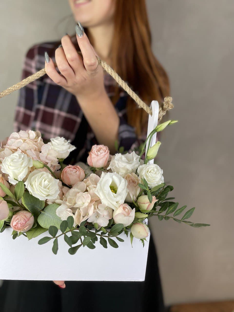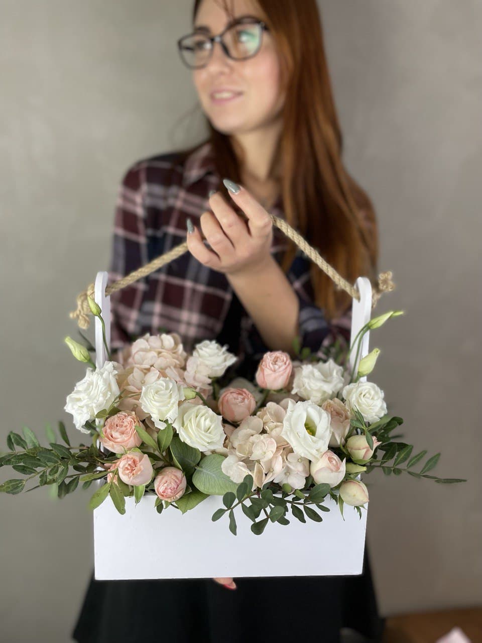 Тридцать девять бутонов образуют плотную белоснежную сферу. Каждый цветок раскрывается постепенно, сохраняя свежесть и форму на протяжении многих дней. Классика в чистом виде.