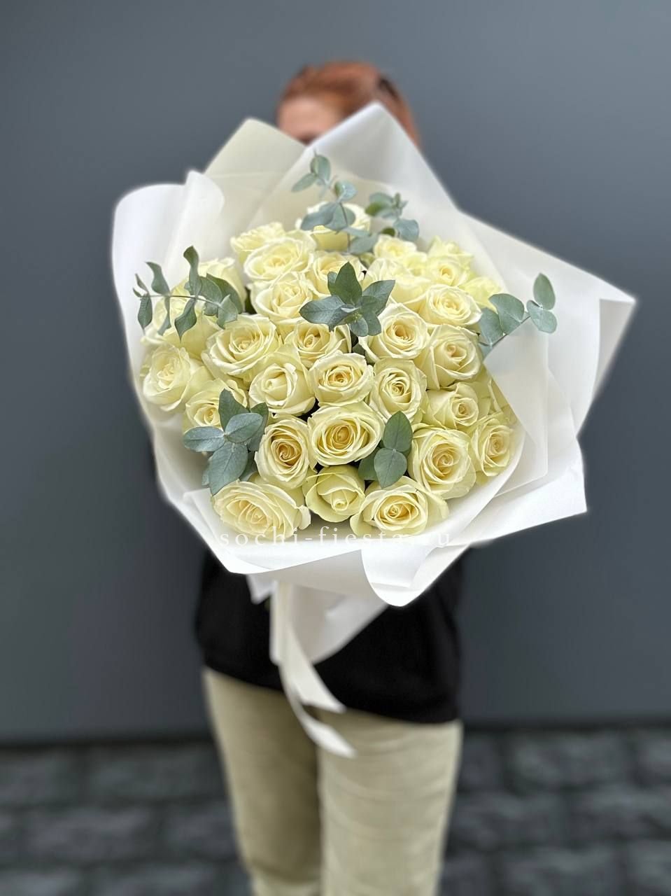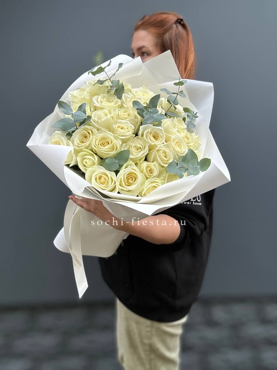 31 белая роза с эвкалиптом