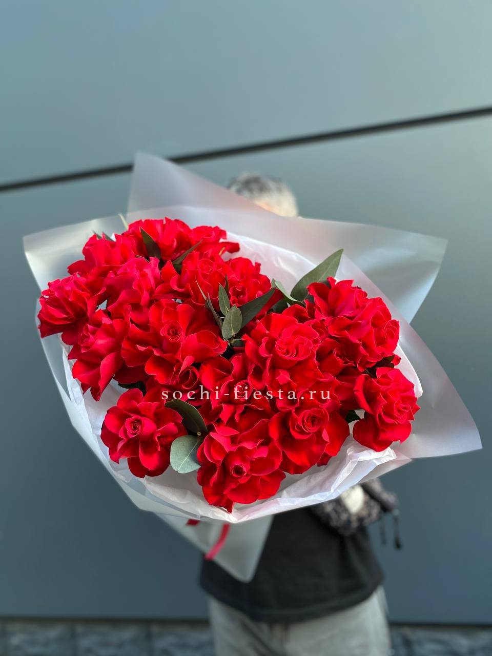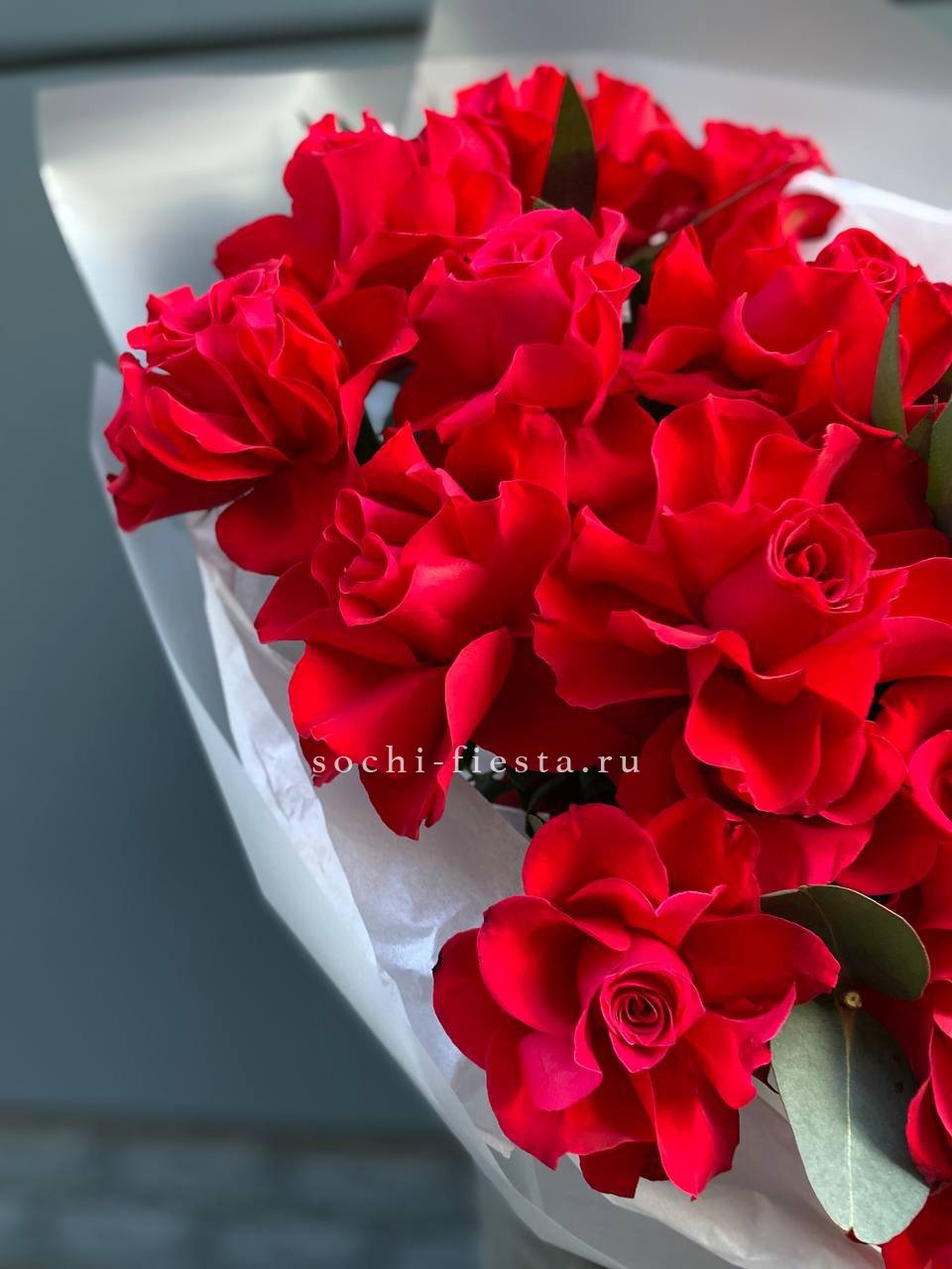 Одиннадцать голландских роз с бархатными красными лепестками уложены в плёнку с лентой. Классическая подача и выразительный цвет создают запоминающееся впечатление.
