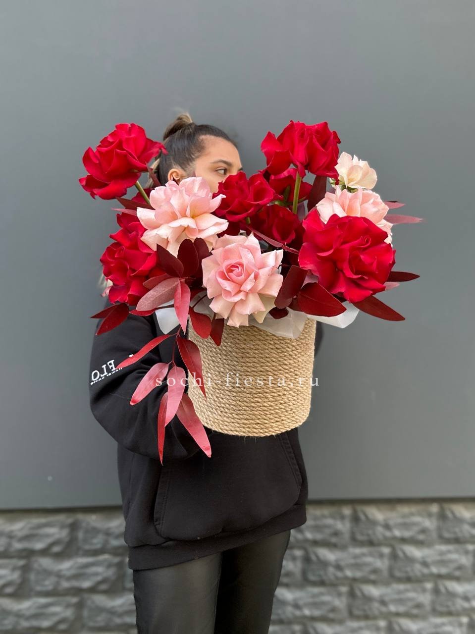 Пятнадцать стеблей Couture вытягиваются вверх, создавая вертикальную линию с выразительным присутствием. Красные бутоны на длинных стеблях задают ритм и наполняют пространство графичностью.