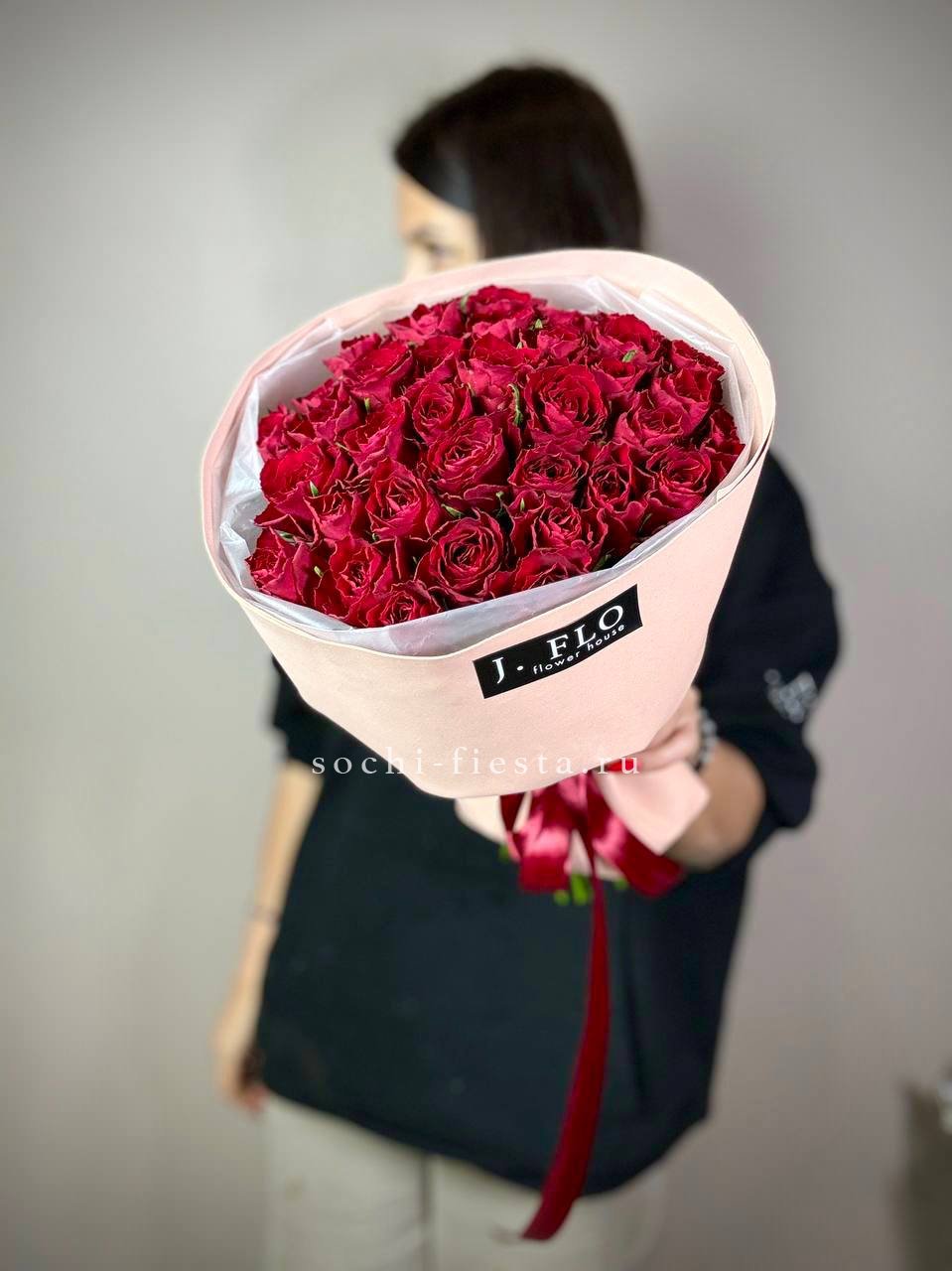 Сто одна красная роза хорошо сохраняет форму и долго радует свежестью бутонов. Плотная сборка обеспечивает аккуратный вид и удобство размещения в любом интерьере.